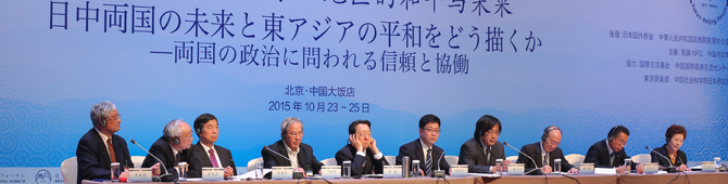 10月24日、25日の2日間にわたって開催されている「第11回 東京-北京フォーラム」。24日の午後の政治・外交分科会では、日本から工藤泰志(言論NPO代表)が司会を務め、明石康氏(同フォーラム実行委員長)、中山恭子氏(参議院議員、次世代の党代表)、山本有二氏(元金融担当大臣)が、中国側からは楊伯江氏(中国社会科学院日本研究所副所長)が司会を務め、陳建氏(元国連事務次長)、呉建民氏(元外交学院院長)、湯重南氏(中国社会科学院世界歴史所研究員)、呂鳳鼎氏(元中央外事指導グループ弁公室主任)、呉寄南氏(上海日本学会会長)の5氏が参加し、「日中両国の未来と東アジアの平和をどう描くか―両国の世辞に問われる信頼と協働」をテーマに議論がなされました。