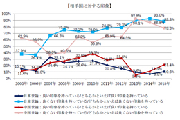 今回の調査結果で日本側が注目したのは以下の4つの傾向である。①日本と中国の両国民の相手に対する印象や、両国関係に対する認識の変化について