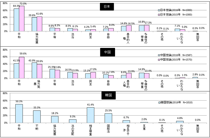 こうした状況下で国民の間には、将来の目指すべきアジアの理念として「平和」という課題がより大きなものとして意識されている。