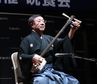 今回の晩餐会のクライマックスは、津軽三味線の第一人者・澤田勝仁氏の演奏です。中国でも有名な作家・太宰治の親戚でもある澤田氏の演奏に、日中両国のパネリストらは熱心に耳を傾けていました。