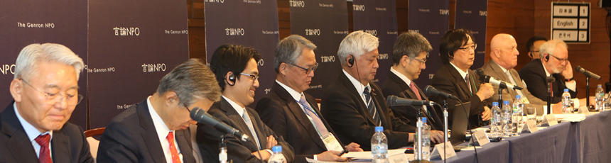 セッション2は、4カ国から11氏が参加し、「将来、この地域に持続的で安定的な秩序をどのように実現するのか」をテーマとして議論が行われました。ここでは、アジア平和会議が、誕生した意義や合意した平和原則をもとに、各国は北東アジアの将来でどのような「夢」を描こうとしているのか、といった突っ込んだ議論が行われました。